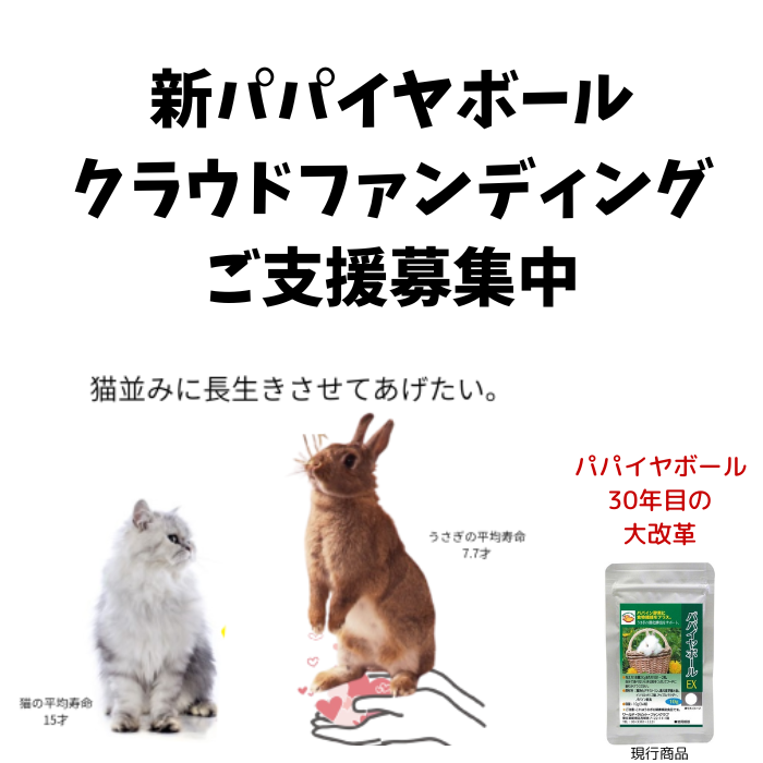 うさぎの毛球症を少なくしてねこ並みに長生きさせたいと考えています。